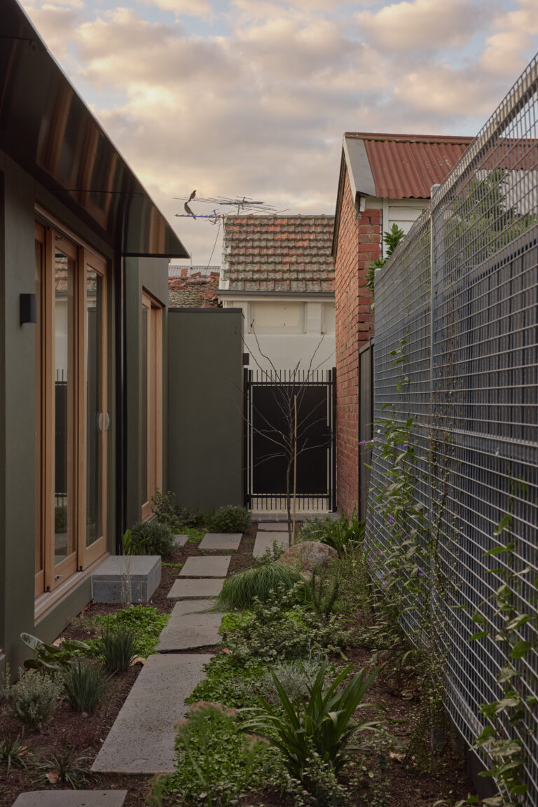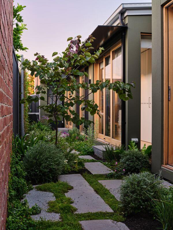 The large stepping stones and walkway through this Fitzroy home provide the feeling of walking through the garden whether you are inside the home or out in the garden.